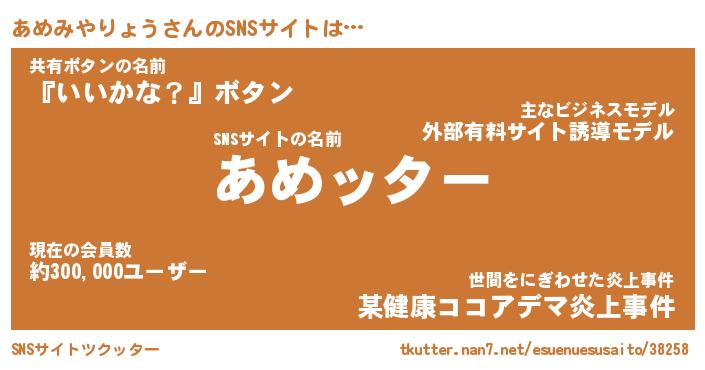| 胡散臭い通販商品みたいなあだ名 | 『億万長者になれる水晶球…その名も「あめみやりょう」』 |