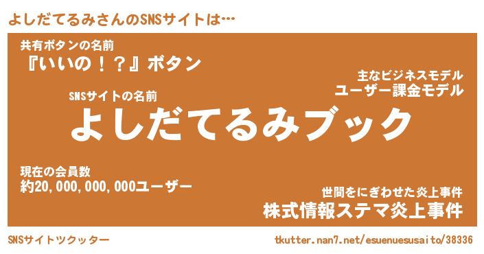 | 男性向けラノベタイトル風あだ名 | 『ヨシダテルミアートオンライン』 |