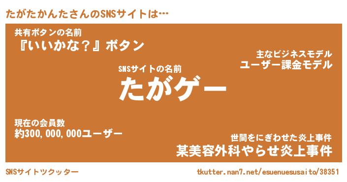 | ポケモン風あだ名 | 『タガチュウ』『タガタダネ』 |