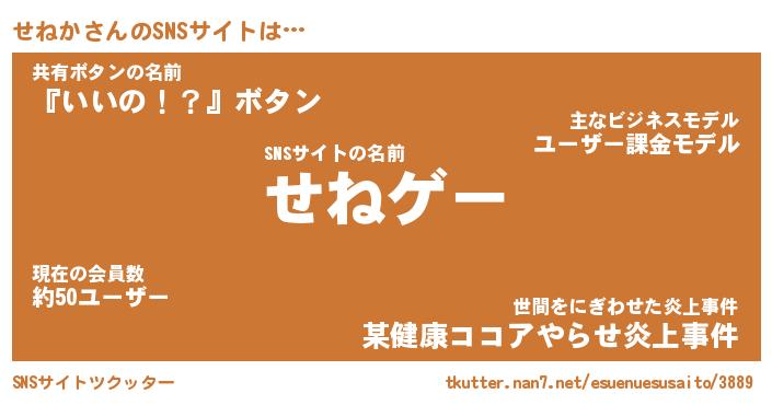 | 男性向けラノベタイトル風あだ名 | 『せねかの憂鬱』 |