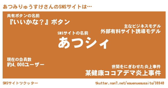 | 男性向けラノベタイトル風あだ名 | 『あつみりゅうすけの憂鬱』 |