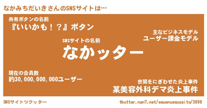| 伝説のあだ名 | 『封印されし竜騎士なかみちだいき』 |