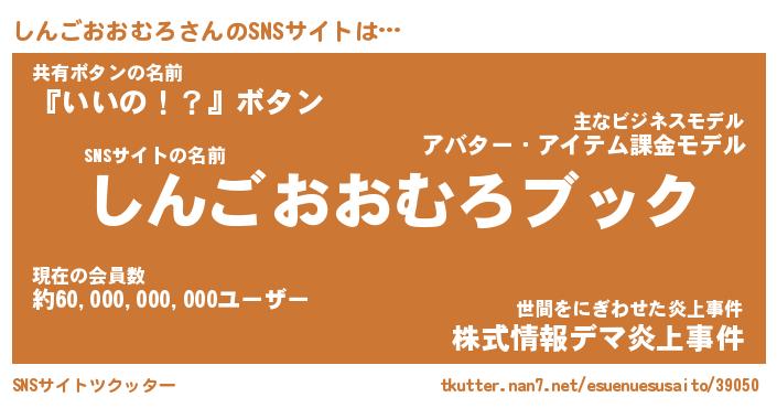 | 男性向けラノベタイトル風あだ名 | 『シンゴオオムロアートオンライン』 |