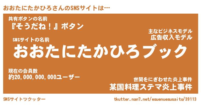 | 女子向けラノベタイトル風あだ名 | 『誰かこのおおたにたかひろを説明してください! ~契約から始まるウェディング~』 |
