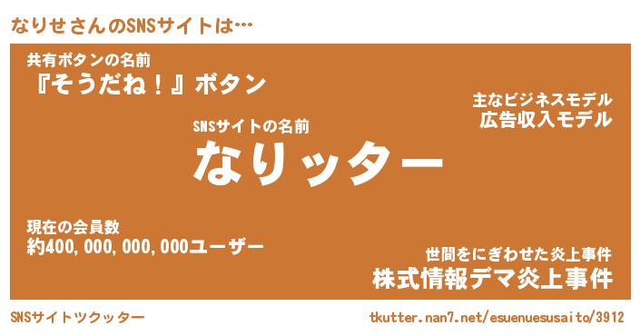 | 肩書あだ名 | 『なりせ御曹司』『なりせ大統領』 |