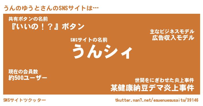 | 男性向けラノベタイトル風あだ名 | 『うんのゆうとの憂鬱』 |