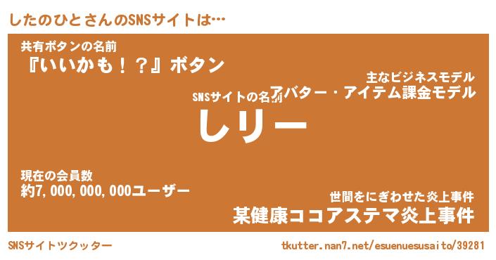 | ファンタジー風あだ名 | 『シタフェル』『エターナルシタノヒトー』 |