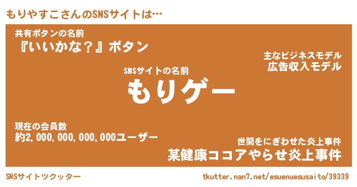 | 肩書あだ名 | 『もりやすこ御曹司』『もりやすこ班長』 |