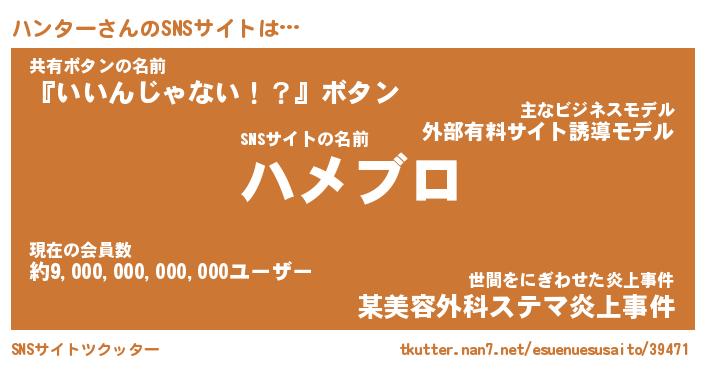 | 意味不明あだ名 | 『ペロリンハンター』『永久保存ハンター』 |
