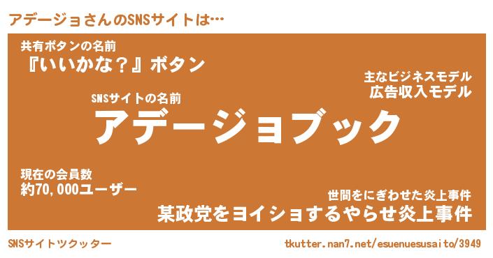 | ヘコむあだ名 | 『アデもー』『なまこ酢』『アデっ子』 |