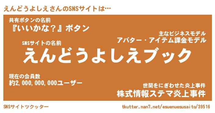 | 肩書あだ名 | 『えんどうよしえ社長』 |