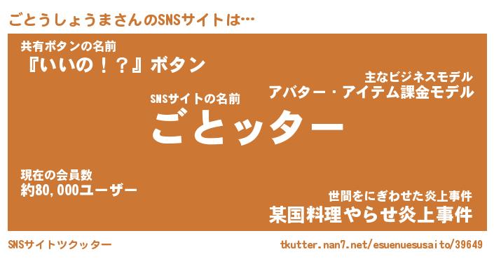 | ヘコむあだ名 | 『ごとにゅー』『つくし』『ごと太郎』 |