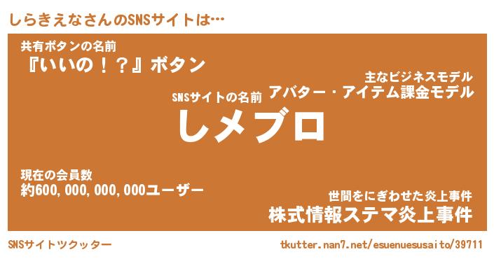 | 男性向けラノベタイトル風あだ名 | 『シラキエナアートオンライン』 |