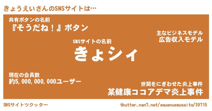 | 肩書あだ名 | 『きょうえいCEO』『きょうえい大統領』 |