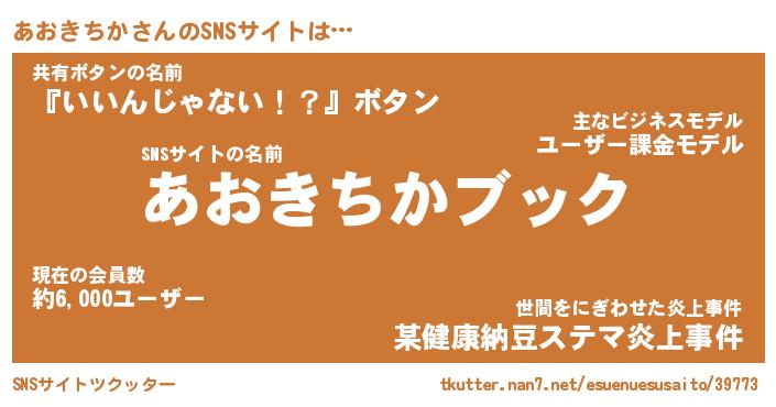 | 男性向けラノベタイトル風あだ名 | 『アオキチカアートオンライン』 |