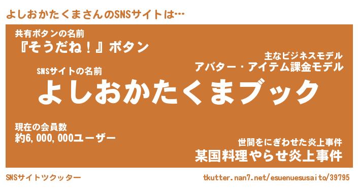 | 胡散臭い通販商品みたいなあだ名 | 『億万長者になれるブレスレット…その名も「よしおかたくま」』 |