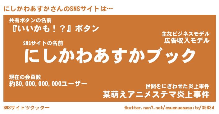| 肩書あだ名 | 『にしかわあすか御曹司』 |