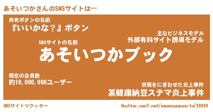 | 肩書あだ名 | 『あそいつか店長』『あそいつか国家主席』 |