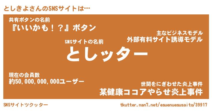 | ファンタジー風あだ名 | 『トシフェル』『エターナルトシキヨー』 |