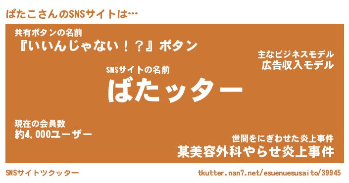 | 男性向けラノベタイトル風あだ名 | 『バタコアートオンライン』 |