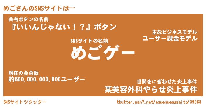 ヘコむあだ名 | 『めごもー』『なまこ酢』『めごっ子』 |