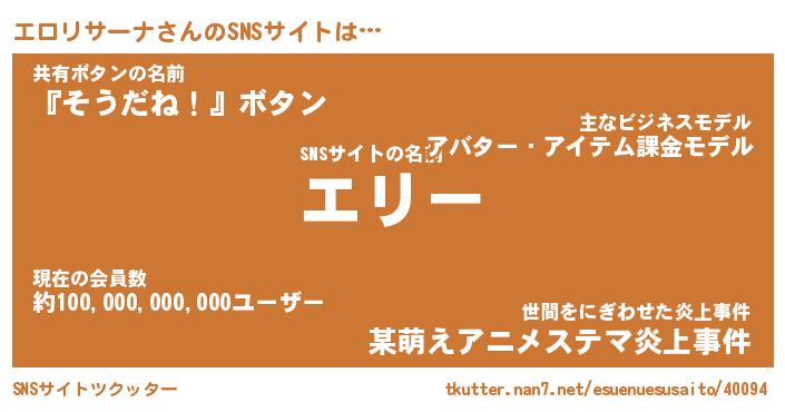 | 男性向けラノベタイトル風あだ名 | 『エロリサーナの憂鬱』 |