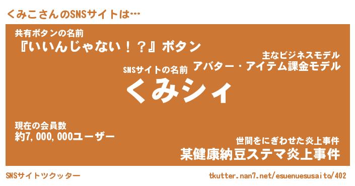 | ヘコむあだ名 | 『くみにゅー』『つくし』『くみを』 |