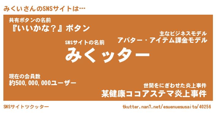 | 胡散臭い通販商品みたいなあだ名 | 『億万長者になれるブレスレット…その名も「みくい」』 |
