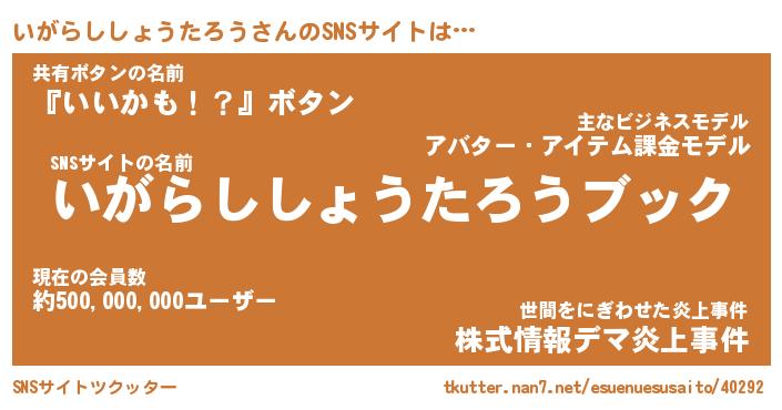 | 肩書あだ名 | 『いがらししょうたろう社長』 |