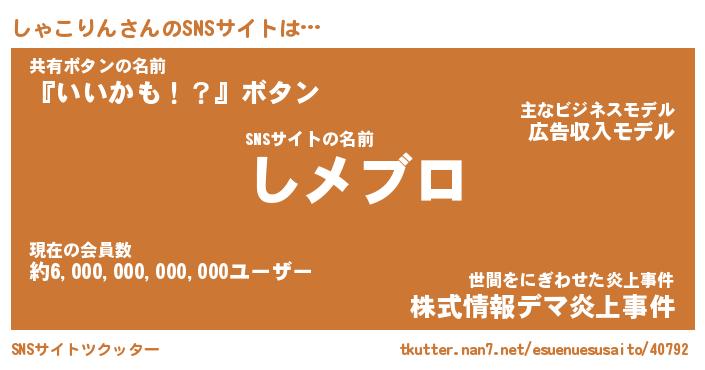 | 男性向けラノベタイトル風あだ名 | 『シャコリンアートオンライン』 |