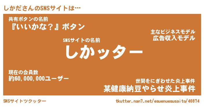 | ヘコむあだ名 | 『しかにー』『レバニラ』『しかっ子』 |