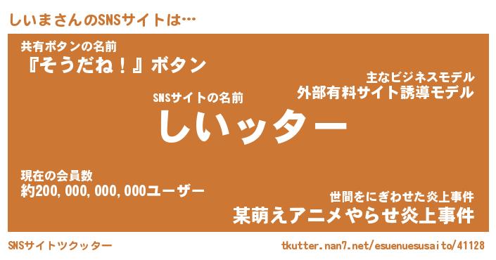 | 男性向けラノベタイトル風あだ名 | 『シイマアートオンライン』 |