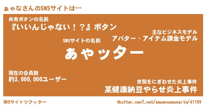 | 胡散臭い通販商品みたいなあだ名 | 『億万長者になれるブレスレット…その名も「ぁゃな」』 |
