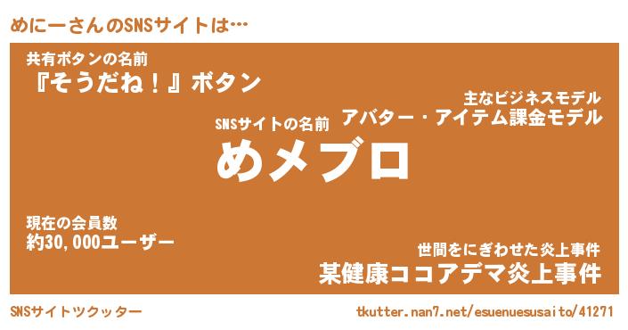 | 肩書あだ名 | 『めにー社長』『めにー国家主席』 |