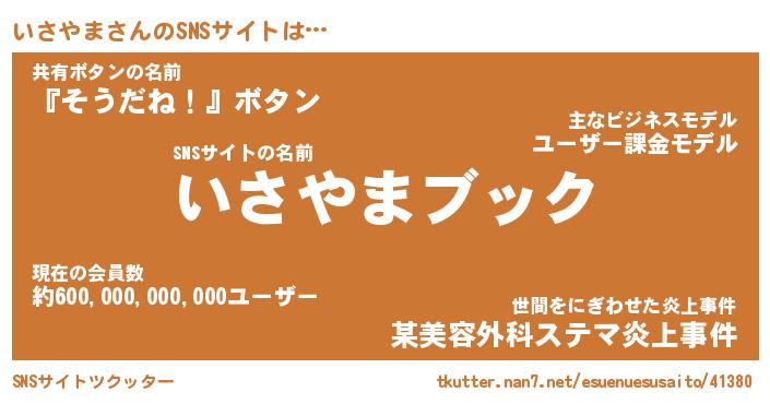 | ツイッター | いさやまさんのツイッターID『namakemono_idle』 |