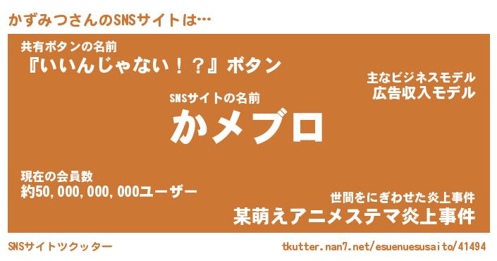 | 意味不明あだ名 | 『ペロリンかずみつ』『永久保存かずみつ』 |