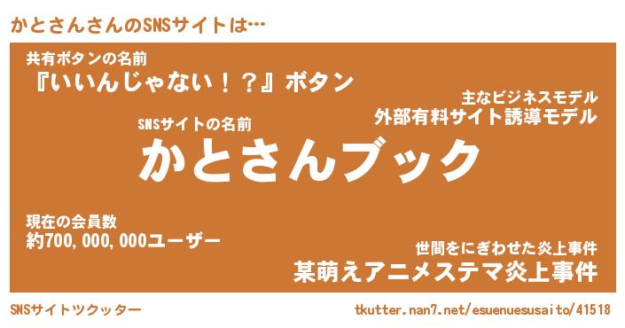| 意味不明あだ名 | 『ペロリンかとさん』『永久保存かとさん』 |
