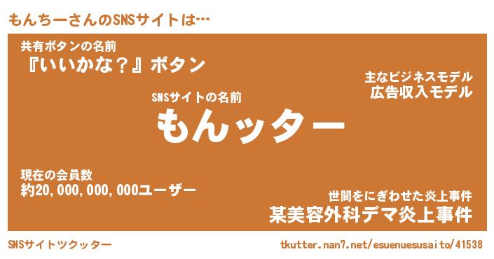 | 胡散臭い通販商品みたいなあだ名 | 『億万長者になれるブレスレット…その名も「もんちー」』 |