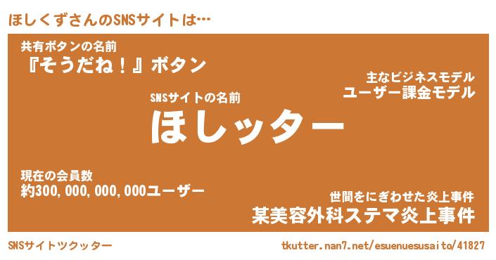| ファンタジー風あだ名 | 『ホシフェル』『エターナルホシクズー』 |