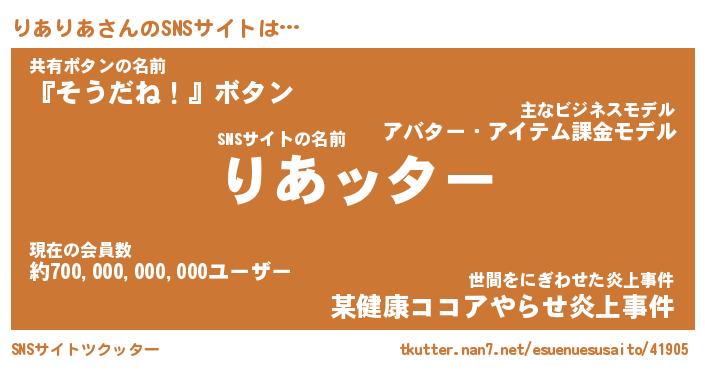| 肩書あだ名 | 『りありあ御曹司』『りありあ大統領』 |