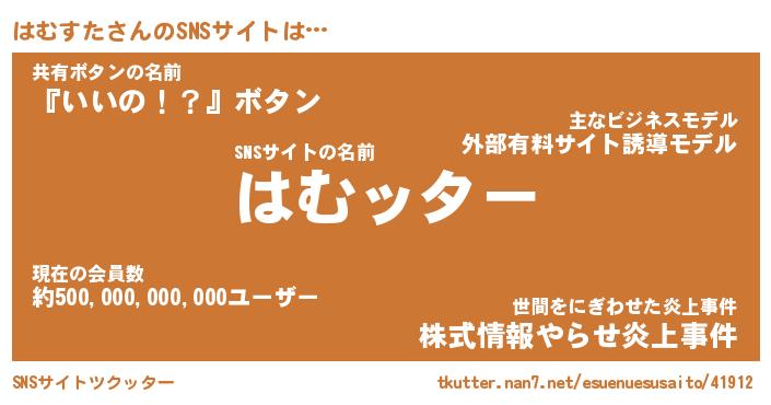 | 肩書あだ名 | 『はむすた御曹司』『はむすた大統領』 |