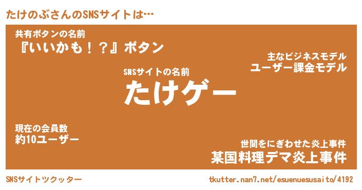 | ファンタジー風あだ名 | 『タケフェル』『エターナルタケノブー』 |