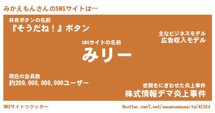 | 男性向けラノベタイトル風あだ名 | 『みかえもんの憂鬱』 |