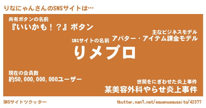 | 男性向けラノベタイトル風あだ名 | 『リナニャンアートオンライン』 |