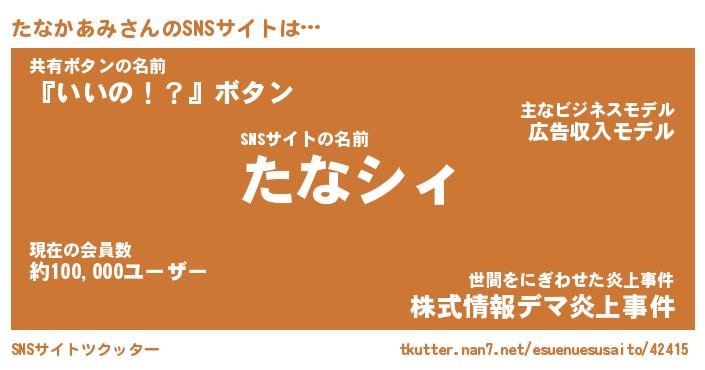| 肩書あだ名 | 『たなかあみ店長』『たなかあみ大統領』 |