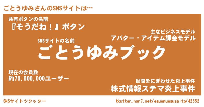 | 肩書あだ名 | 『ごとうゆみ社長』『ごとうゆみ国家主席』 |