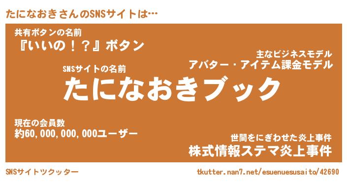 | ヒーロー風カッコイイあだ名 | 『スーパータニナオキ』『黄金騎士タニ』 |