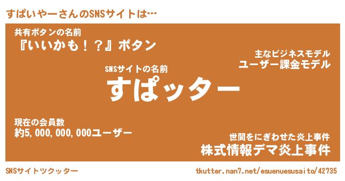 | 胡散臭い通販商品みたいなあだ名 | 『億万長者になれる霊験あらたかなお札…その名も「すぱいやー」』 |