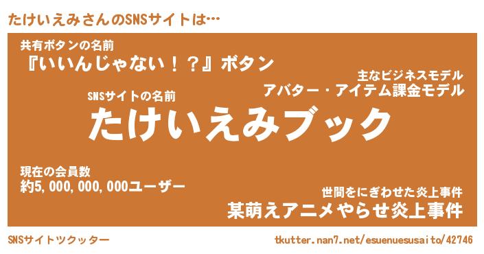 | 肩書あだ名 | 『たけいえみCEO』『たけいえみ大統領』 |