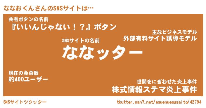 | ヘコむあだ名 | 『ななもー』『牛乳』『ななお』 |